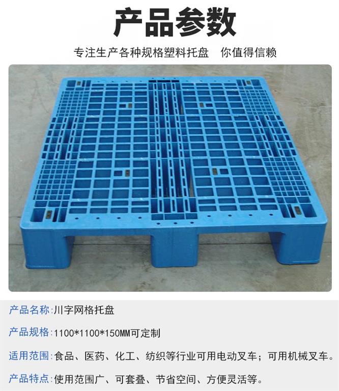 川字網(wǎng)格托盤在整個使用領(lǐng)域里面是比較常用的一種倉儲貨架墊板,叉車板托盤,周轉(zhuǎn)川字塑料托盤。北京華康用好的設(shè)備,科學(xué)的工藝,加工好產(chǎn)品。