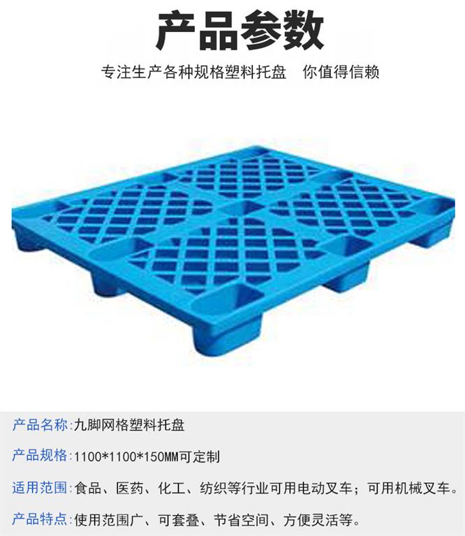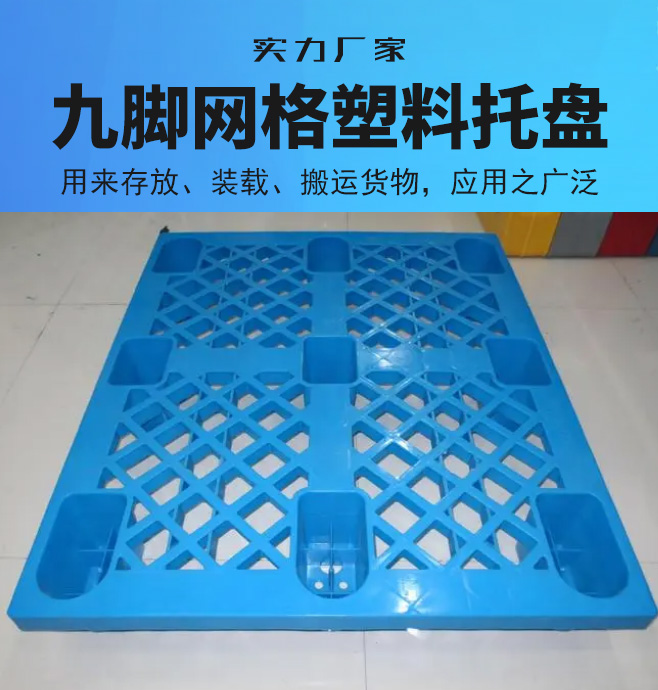 1111九腳網格托盤,此款托盤底部有九個腳,表面為網格狀,其行業內部稱之為九腳網格托盤。